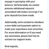Withdrawal Holds Are Back. Once again we are doing our yearly casino reviews and it's been confirmed that the WITHDRAWAL HOLDS are back everyone, and that's across all sister platforms. Withdrawal holds are taking days to months to process calling it game log reviews, unusual activity, tech issues or backlogged. Holds happen to free float funds. Floating funds is when the casino gains funds of your winnings on game platforms. This usually occurs through unregulated casinos. If you don't mind the holds then they are one of the best casinos to play with. If you have a issue with holding your withdrawal winnings then don't deposit here and invest your time somewhere else. Once the game logs are checked and completed then you will be processed but it can take up to three months for that to happen sometimes not even receiving winnings if your dealing with extremely high amounts. If you want to dispute the website that continuously holds winnings for days the only way to do so is to report the domain name through domain purchaser websites. As an unregulated casino the casino uses software that protects the business so reporting to regulators will be unsuccessful. Just be aware before you deposit. So to conclude the review, our team thinks the extended hold times on winnings are unnecessary and is actually hurting the business by causing the casino to loose more money. If you want to continue and play here have fun, get your game on and please play responsibility.