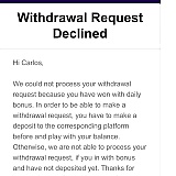 I deposited 45 And Got it up to 975. When I go to cash out, They said I can't because I won it on my daily bonus. I requested another withdrawal, And they deny me again. F****** cheats