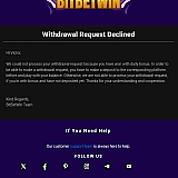Definitely do not recommend they will not let you withdraw with the free 1$ bonus unless I make a deposit which I did last week definitely scammers looking for any little reason to cash out zero stars they got even greedier they used to be good I will never ever make a deposit again I spent already $5000 on bitbetwin and won on Vegas x off the daily bonus $1 amount of 20$ got declined so what is the daily bonus for I hate bitbetwin