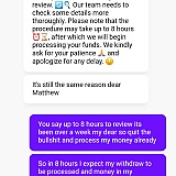 For the life of me I don't know why they haven't been paying people withdrawal but they still taking deposits and won't say why or how long they are being very vague I will not be spending another dime with them