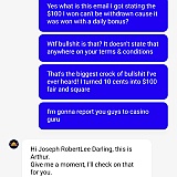 I won $100 on firekirin off a 10 cent daily spin and they are refusing to pay stating they don't pay winnings on daily bonuses even though it doesn't state that anywhere on their terms and conditions or FAQ