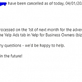 I noticed that the company was charging me in March still, so I decided to cancel all the products that were listed in "my products". No way to remove my card information on their platform, so I thought because I had no products to bill they wouldn't bill me--wrong. Noticed in my bank transactions Yelp decided to bill me again even when I have no products under them. I called customer service and Cody was of no help and told me to call on Monday. I told him on my dashboard it says they plan on billing me May 1st and he told me no they weren't because it didn't show up on his dashboard... but it's showing up on mine. Definitely a scam for those not paying attention to what they're being billed for, be careful!