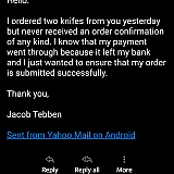 I ordered a couple knives last Friday. My card was charged but my order has still not shipped. It is now Tuesday of the following week. I never received an email with my shipping information, which their website clearly states I should receive. I have emailed customer service multiple times and have still not received a reply to any of my emails. I hope I eventually receive my knives because I spent a lot of money on them. Very unhappy with my Blade HQ experience so far.