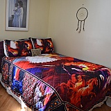It took FOREVER to get the blanket and when I got it the quality was session than I expected. I love the art work and it looks just like it was advertised. I would never order something from this company until they change the shipping. I never knew it would take so long until the order was finalized.