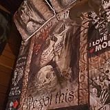 Reminds me of my beloved husband. Love the sayings displayed and the brilliant colors. Quilt is soft and warm and snuggly. Excellent quality. Love it so much!
