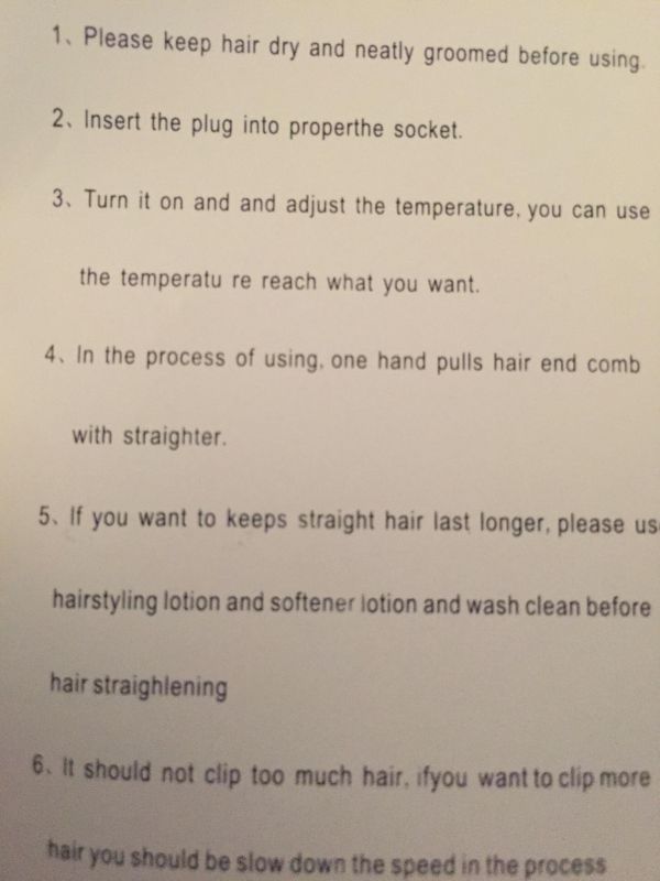 It's so easy to use and convenient with reasonable price. With easy handling. Good straightener. It's to good as i except.