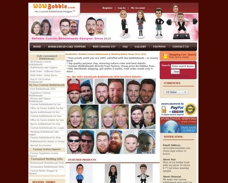 Bobbleheadsme has a rating of 5 stars from 1 review, indicating that most customers are generally satisfied with their purchases. Bobbleheadsme ranks 3rd among Bobbleheads sites.
