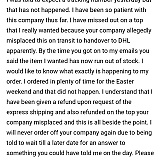 I am a first time customer with Boohoo, and I was really looking forward to receiving my shipment because I'd heard really good things about them. I placed my order on 3/17 a month before I would need the items, thinking that this would give enough time for the shipment to process and be delivered. I was promised that the shipment would only take 8 days. Here it is two weeks later and I have still not received my order. I can be patient, I have had orders take longer. I understand that it is not completely Boohoo's fault that the shipment has been delayed, but my complaint is not about the shipment being delayed, but rather the way that Boohoo's customer service has handled my situation so far. I have been in contact with 2 different reps, and both left me feeling very helpless. The last person I spoke with was patronizing. It is your job to deal with customers and help them with their issues, so why act as though that isn't your job? Why treat your customers disrespectfully? A customer service rep's job is to de-esculate, but instead I was left feeling like they were trying to get rid of me. My first experience with Boohoo is not looking good. I will not be ordering from them again in the future. I will update on the progress of this issue so other's can learn from my experience.