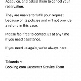 Booking. Com didn't answer any of my emails or queries and on the phone kept cutting me off and they offered me a measly 15 percent back from £200 I paid