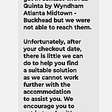 I want to start off by saying the reviews might not be so terrible if you actually got a response from the property when you contact them. I dunno why I'd expect that it's been 14 days give or take a day and no response at all. I booked through booking.com for July 21,2023 until Sunday before leaving on our cruise. The outside wasn't appealing to the eye but at least they were making an effort to make it better. However when I got to my room which was a good size I went straight to the kitchen to put supplies away and was greated by four or five german roaches on the kitchen counter. Imagine my disgust, I went straight to the desk and the young man there said nothing could be done until maintenance got there the next day. So unfortunately after paying 715.00 for two days searching for another hotel was out of the question. So I told my kids to keep their suitcases closed and I'd go down in the morning. Well morning came and no maintenance, so around noon I went to the desk to the young lady and again voiced my concerns. Now we got in late that night so I didn't even see some of the other things lacking in our room, other issues. Like the broken handle in the masters bathroom to the shower. Or no blinds in the master bedroom, just shear curtains. I could pick many things a part but I don't live for perfection.Also the ac was on the Fritz. But BUGS NO! I went to the desk several times for my room 501. No one in my room saw maintenance come or go. However I did go to my room at one point and my door was wide open. So if they did come they left the door open with all of our things exposed. I'd like to tell you this is the worst of it. But those little pest hitched a ride home. So now I have to take care of that cost. It would have been nice when I reached out to them if they made an effort to resolve the problem or at the very least apologize but nope they did not. The only positive I have is for the bartenders. After to warming up to them they made me feel a bit better. But if there are roaches in one room there are roaches in others and they apparently do not care because they didn't even try to move us. Please don't comment back with some generic response from the owner of the hotel. In all the bad reviews I saw apologies never anything to make it right or something to try to fix it. A discount to customers who you might want to come back not just an "I'm sorry" which I suppose is better then nothing. The funny thing is I ran a hotel at one point in my career so I know that complaints can be tough, but making no effort for your guest is not going to help your business and to me is unacceptable. I also know it was the hotel's responsibility to to make an effort legally when it comes to pest control. But that's not what it's about for me and I made an effort to keep this to myself in hopes they'd reach out to me.