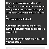 Still waiting for my money, this is daylight robbery. I've never witnessed something so terrible, this is very very upsetting and I'm extremely annoyed. I demand compensation and full refund from booking.com, I've emailed the head of complaints and the CEO but no reply.