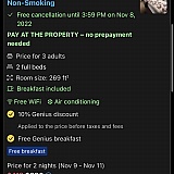 They inform the reservation was free cancelation, but to cancel they are not giving the money back and blaming the hotel. So, if you want to deal with honest company, do not go with booking.com. They ask me to call the hotel and even proving them, I was right, they kept my money. So they are liars and thieves.