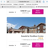 Follow up review. I am Canadian and booked a hotel in BC in Canadian $. I prepaid in Canadian dollars. I was charged in US dollars. Book online converted to US. I paid a total of $352.00 for a 3 star room. I contacted 2 different individuals at Bookonline, who basically said "Too bad, you booked it" STAY AWAY FROM BOOKONLINE. They are a dubious, underhanded company.