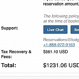 I thought I was using booking.com but didn't realize until the big green book button came up to confirm that there were HUGE fees associated with this website and that there was a no cancellation policy. Accidentally hit that big green button when I was trying to go back and see why it was so expensive. Immediately tried to contact customer support to fix and despite calling, trying to live chat and emailing they didn't get back to me for over 12 hours. 24/7 support is a huge lie and the fees the charge are 5x what any reputable site will charge! Stay away, far far away! I looked to BBB after realizing I was taken advantage of and see they have an F rating. Well deserved and hopefully some lawyer will start a class action lawsuit against this company and drive them out of business. I am leaving as many negative reviews as I can everywhere hoping I can help someone else no get charged huge unnecessary fees! As you can see in the picture the taxes and fees are almost half the total price. When I went to the direct hotel website the fees were only $80! Let my $460 mistake help you! I will update since they responded…. Unfortunately my private response back to the company has been ignored so they also pay lip service on negative reviews but don't follow through. My above review stands as they have now wasted more of my time!