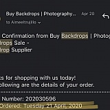 I ordered a backdrop April 19. I was immediately inundated with spam emails from 8 to 10 companies, all with the same cancellation process and screen response. I was charged immediately. I didn't receive the order, so I reached out. Bella told me May 11 the order had been sent by FedEx! It's now May 21... No backdrop. I'm glad I wasn't in a hurry, but I'm starting to wonder if this is a legitimate company or a front for a marketing email mill.