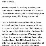 Additionally, it appears the device sent in was not the model indicated in your order which is why the offer fell to $0. The device you sent in is not actually a device we purchase so we offered to recycle the item or get it sent back.