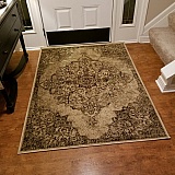 We bought this rug on line. When it arrived it was not wrapped very well with plastic so when the FedEx driver through it on our porch the plastic ripped which caused the top to be dirty. The rug was rolled too tightly, is of extremely poor quality, or sat around in a non temperature controlled warehouse for too long. The problem is that it won't lie flat. We tried everything even rented a $35.00 steamer. Nothing works after 2 months. I contacted them to return their defective product. No response. I will be filing a complaint with the BBB. DON'T buy their rugs!