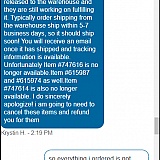 I ordered 8 things and 6 things were out of stock! They just said they were back ordered and to expect them later. Well they never came and then the customer service told me they will not be getting any more in. I just don't understand. If you have 2 in stock- only put 2 available. It seems really simple to me. But this will be my first and last time ordering from this Sh**hole company! Total waste of my time and I'm still trying to get a refund!