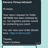 I had bought a gold bracelet jewelry online from Candere order Number ******* on 26 December 2021. When it arrived on 5 Jan 22, we realised it was small and wanted a return as per policy as it could not be exchanged within the time we required it. Here the problem started - the first time we asked for a return they confirmed it but nothing happened. Realizing that the 15 days return period would get over We again raised a query through email with no response. They keep telling you all sorts of stuff on WhatsApp chat but problem does not get resolved. The customer care number kept getting disconnected. Finally we managed to get through but the pick up and refund is yet to happen.