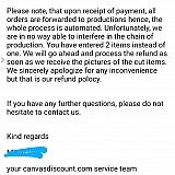 I have previously ordered with best canvas & was so impressed. Well, not this time. Not only did 1/2 my order arrive, with one of the two sent being misprinted. But after numerous telephone calls that don't go through (they disconnect after 5 mins) and about six emails asking for details on my other canvases, with no reply, I am shocked at the $#*!ty service. This is ABSOLUTELY the worst service I have ever recieved. If I didn't need the canvases for Christmas presents, it would actually be comical. Calling my CC company tomorrow to process a refund. Do NOT order with them!