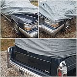 Car cover perfect fit, thick fabric, easy to put on. Bought for my grandson living in Fl. And he said even a hurricane can't blow this cover off. He's so happy. Thanks for great service and quality.