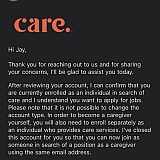 Hi Jennifer, I'm sorry you had trouble with your account. We'd be happy to assist you if you want to reach out to us through our Help Center's contact us form found at help.care.com. You can also reach out to us through our FB Messenger. Please include Reference Number REV-017114 with your message.