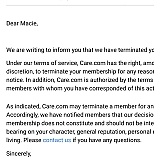 - The name and account number of the company taking our money was untraceable by the bank which resulted in months of search trying to find who was taking our money while Care.com was still silently stealing from our account every month.