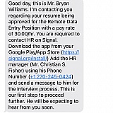 This whole app promotes scammer people are using real company information just to scan you out of your information if you received a job on and they ask any personal questions like your ssn where you located at or what bank you with. ITS A SCAM