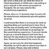Please, email me directly at [email protected] with your order details and I will assist you further as well as offer compensation for the inconveniences caused.