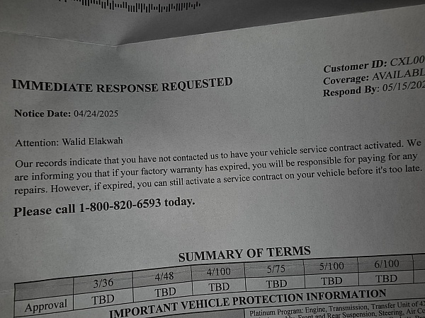 I have Car Shield. I gave them the contact number.