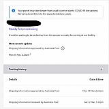 I placed my order on the 5th of March, at which time I was given a date of 19th at the most. Then after contacting customer support about the order, they gave me the date in the first picture. And then after posting a bad review on Trustpilot, they changed it to the date in the second picture. The final picture is from Australia Post Tracking, which hasn't been updated since the 14th of March.