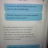 CHEGG: I am not sure as these are answered by experts and unfortunately WE CAN NOT guarantee that the answers WILL always BE correct. But I can refund those three questions back for her, and she can try reposting those questions. The order is canceled, however you still can use the services until the end of the billing cycle. We can not refund the subscription unfortunately. Our terms of use does state that our SERVICES ARE NON REFUNDABLE and that we CAN NOT GUARENTEE THE ACCURACY.