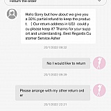 Answer: Return policy is a joke, they don't honor it. They'll offer discounts and partial refunds until the return window runs out. If the window runs out just do a charge back. Most credit card companies will side with you due to them not honoring their own return policy.