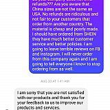 The experience was ridiculous. It took me forever to get my order. When I did get my order, I was not satisfied with anything I received. It was cheap fabric and unknown fabric. I will never purchase anything from there ever again.