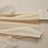 Overall there were a bunch of misses on this order. I ordered the short sleeve knit top with removeable bow. My order was taking extra long to process and I had to email the company to get the order pushed through. I opened the order right away to try it and see see if it fit and the serger missed about 1 or 2 inches of fabric down the side seam and there is a big hole. I can fix it myself but I really shouldn't have to? Other than that the fabric of both the knit and the sheer cotton are nice. It's slightly sheer so wear matching undergarments and it will need a good steam or press before wearing it out. The elastic ruching at the sleeve hem isn't too tight around the arm which I like very much. Overall recommend but make sure you have a sewing machine for when quality control decides to call in sick and miss your order.