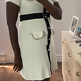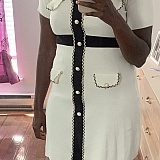 It's a super nice dress and i love it. The buttons are really cute and shinny. The black and write go well together. It's fits like a glove on my body.