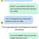 Oct 29,2022 I ordered a scooter from BUCKMASO"M" not BUCKMASO"N" only to find our it's a fake website. Nov 4,2022 I filed a dispute with Chime, I checked account fir correspondence, nothing until I contacted CHIME CHAT, I was told it was still under investigation and a decision would be made Feb 2,2023. I called back 2 hours later and chatted with a different live agent she told me my case was closed Nov 14 or so and that she would reopen my case with the documentation I provided. Jan 6 I received a notice to ck my Chime for a document, It was a denial to issue a refund of my 76.00. I will be closing this account with CHIME due to dishonesty of the company. I also mistakenly transferred money to the 2nd card sent to me, and not knowing a credit check was pulled for this it showed on my credit so this card was an actual credit cared pre pay type the consumer puts money on and is tracked by CHIME. I have canceled my direct deposit and will never do business with this DISHONEST company ever!