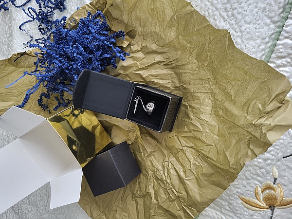 This is an unexpected surprise. The packaging was great and it came on time. I have received compliments on it. The feel and look of this ring is classy and looks great on me. Thank You!