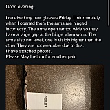 I ordered contacts and glasses. The glasses arrived with bent arms and twisted frame.
