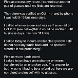 No longer is there a 10-15 day return policy since January, please change the policy information on your website to reflect the actual time it takes for returns to be returned as my insurance ran out because they didnt get back to my account and refund in time.