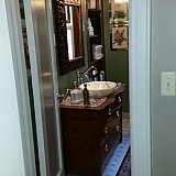 I was trying to take my 1990's bathroom to look like a bathroom of 1925 when my house was built which was a typical American Standard fixtures and white subway tile. I didn't want to spend the money to replace the entire bathroom so I tried to make the attempt of capturing the feel of 1925 design. I converted an old oak dresser to a vanity and needed a mirror to go above it. I did a search on line of wooden carved frame mirrors and found this mirror on the Coleman Furniture website. I made the purchase immediately and they were out of stock at the time. The manufacturer had to produce more stock and Coleman Furniture kept me informed of the progress throughout my wait time. I was very pleased with the quality when the mirror arrived and I installed it immediately. Now when I sit on my throne, I look around and think to myself, I have a $#*! house for a showcase.