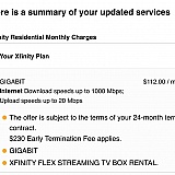 I'm paying $112 for internet ONLY! They lock you into a 2 contract, but they call me every 6 months like clockwork to say my promotional rate expired and they raise the price on me AGAIN! So they can change whatever they want in the contract But…if YOU try to get out of the contract they charge you a $230 early termination fee. Good luck trying to even get anyone on the phone to talk to and IF you do they are completely full of $#*! with everything they say because everyone you talk to will tell you something different. Even showing them I've been a customer for so long with 100% on time payments, they do 0 accommodations and give 0 F's about their customers needs.