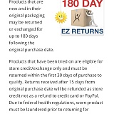 The return policy (see screenshot) makes it seem like all unworn products can be returned and refunded for up to 180 days. But you can ONLY get a real refund if they RECEIVE the return within 15 days of when you PLACED the order AND the package is unopened.