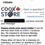 I've shopped at Cookstore.ca many times over the past 5 years. Their selection of high quality cookware is among the best I've seen in Canada. While delivery sometimes takes a little while, they keep me posted and always come through -- and I've found it's worth the wait for excellent products, some which can't be found anywhere else. Recently, they went above and beyond: I had ordered a high-end item that unfortunately had a defect that was revealed on use; when I went to the manufacturer, their customer service was surprisingly and disappointingly inadequate. I contacted Cookstore.ca and explained the situation, and without any further questions they made it right. Kudos to Cookstore.ca for being a responsive -- and responsible -- retailer!
