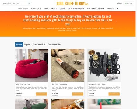 I found this coolstufftobuyinc.com site while searching for cool things to buy for my brother. The site's easy-to-use design made finding the perfect gift very easy (which led me to a NES Console Super Mario Bros Lamp and a really funny mug. A cool website for anyone whose looking to get geeky stuff and hilarious gifts.
