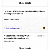 I purchased a dress and was told it would ship within 48 hours of purchase. It has been one week and the dress still has not shipped. The UPS label was generated and shows it's "shipped" but it's been sitting in California since last Wednesday, as I have verified this with the designer and UPS directly. Save yourself time and stress and shop somewhere else.