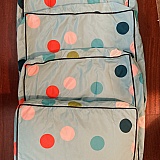 Made well, came quickly, however-the pattern is way off in scale compared to the photo. It shows a field of small polka dots about each an inch big, scattered like confetti on a light teal background. The fabric I got has large polka dots, about 3 inches big each, spaced far apart, with mostly the light teal color showing. The fabric i chose was playful, but what I got looks like a circus tent. I don't hate it, I barely like it, it's not what I ordered. I can count about 9 polka dots on each side as opposed to what seemed to be countless polka dots. I ordered the fabric based on a pattern hiding any dirt or stains.