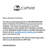 I have ordered twice from Cupshe. On both occasions, my order was processed quickly, I was kept informed and the items arrived quickly.