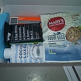 I recently won a goodie box for the first time and what a great box it was! Gluten free crackers-- delicious! 3 ingredients bar--so tasty! Amazing lip balm, coconut water and a loaded nut bar! So good! Thank you goodie box! I hope I win again soon.