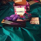 The first scein of yarn I received was super silky and crazy colorful. I completed the "Ripples Neckware" pattern with this beautiful yarn. I also received knitting needles and a crochet hook that are made of wood, of good quality, and are purple and blue variegated. I also received a few free patterns! The second box I received had a beautiful blue and purple variegated yarn. I haven't had a chance to make anything with it yet but it's stunning! I also received beautiful yarn earrings! I am in LOVE with the Darn Good Yarn box! It is only $10 a month and I won't be cancelling! I will be surprised with something new every time! I'm sooo excited!